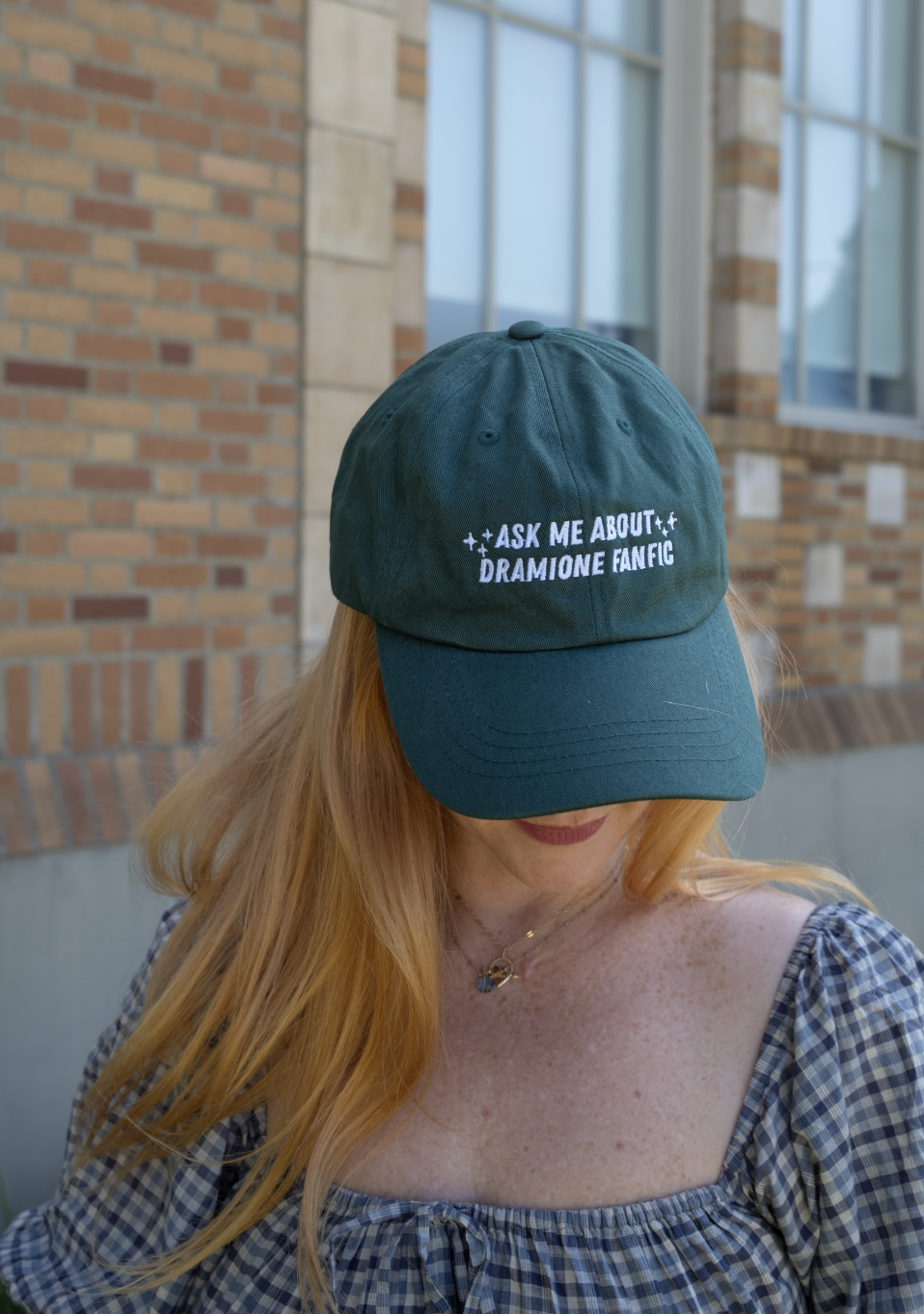 The Ask Me About Dramione Fanfic hat is a shameless conversation starter — perfect for book clubs, coffee shops, or just letting the world know where your allegiance lies. ✨
