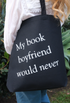My Book Boyfriend Would Never Gusseted Canvas Tote Bag - Black